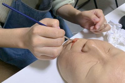特殊メイクの個別レッスンにも、全くの未経験の方からプロとして活躍中のヘアメイクアーティストさんまで、さまざまな方が参加されています。